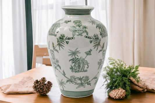 Vintage Style White and Green Ceramic Willow Vase - 30cm