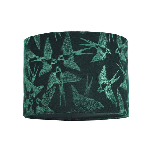 Bird Decorated Soft Velvet Fabric Lamp Shade with - 10" - Green