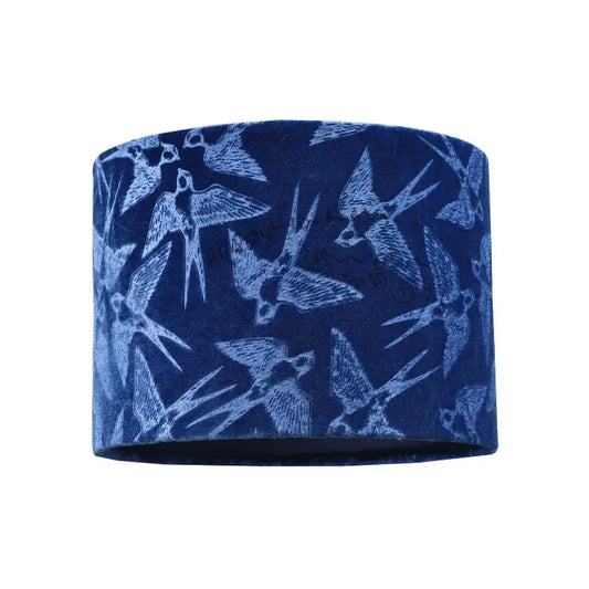 Bird Decorated Soft Velvet Fabric Lamp Shade with - 10" - Blue