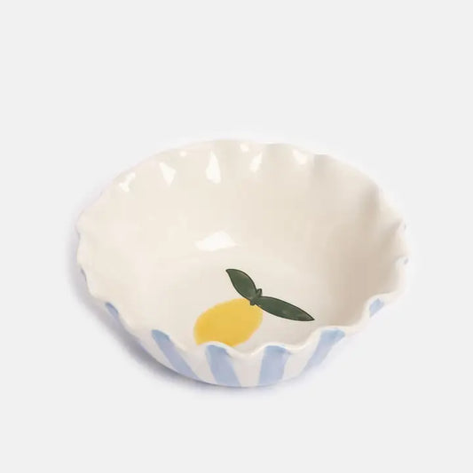 Blue Outside Stripe/Lemon Motif Frilly Bowl by Caroline Gardner - Set of 4