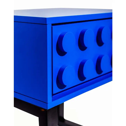 Blue Block Solid Wood Single Drawer Bedside Table - 54.5cm