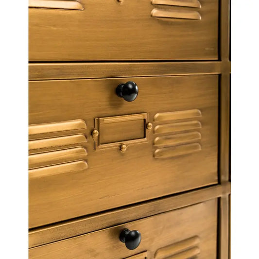 Brushed Antique Gold Metal Multi Drawer Side Cabinet - 77.5cm
