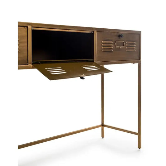Brushed Antique Gold Metal 3 Drawer Console Table - 125.5cm