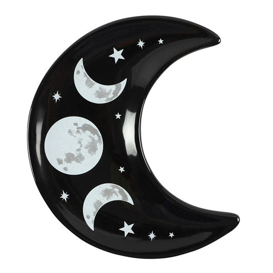 Ceramic Black Crescent Moon Trinket Dish - 12cm