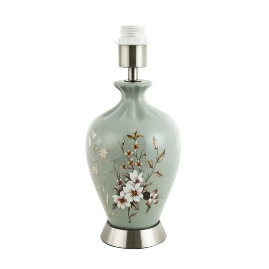 Ceramic Lamp Base in Dusty Duck Egg with Foliage and Floral Decor - 36cm