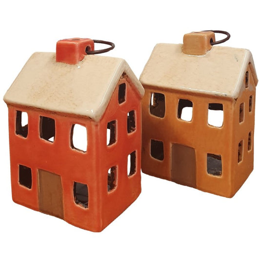 Ceramic Houses Ornament, Tealight Holder - 18.5cm