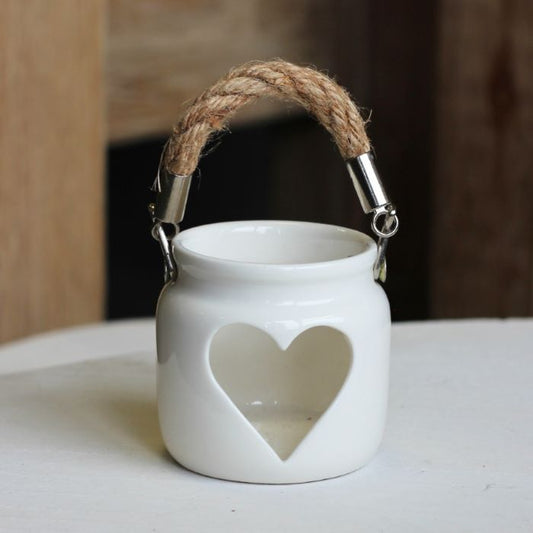 Ceramic White Heart Tealight Holder 7cm