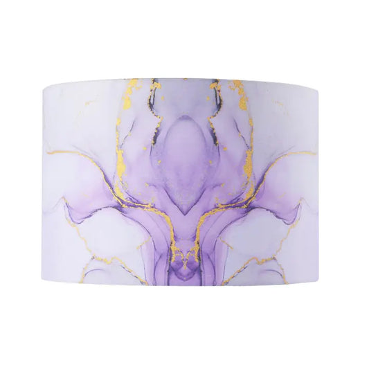 Designer Drum Lamp Shade in Marble Effect Cotton Fabric in Soft Lilac and Purple - 12"