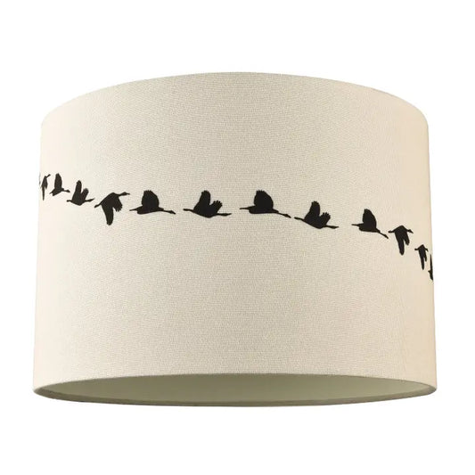 Flying Swans Lamp Shade in Light Cream Linen Fabric with Cotton Inner - 12"