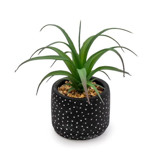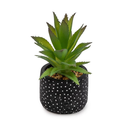 Green Succulent in Black and White Polka Dot Cement Pot 17cm