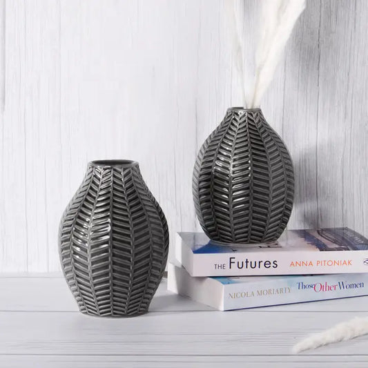 Grey Ceramic Leaf Inspired Vases - Set of 2