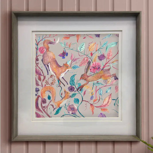 Leaping Into the Fauna Framed Print Nut - 81x81cm