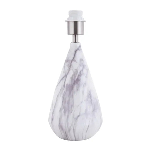 Marble Effect Ceramic Table Lamp Base with White Gloss Glazing and Chrome Trim - 37cm