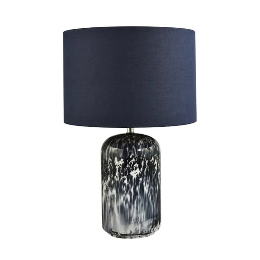 Modern Navy Blue and Smoked Grey Marble Snowflake Glass Table Lamp with Shade - 46cm