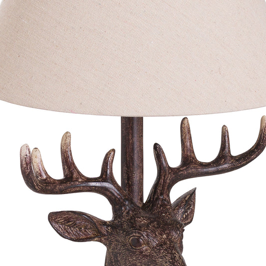 Stag Head Table Lamp With Linen Shade - 48cm