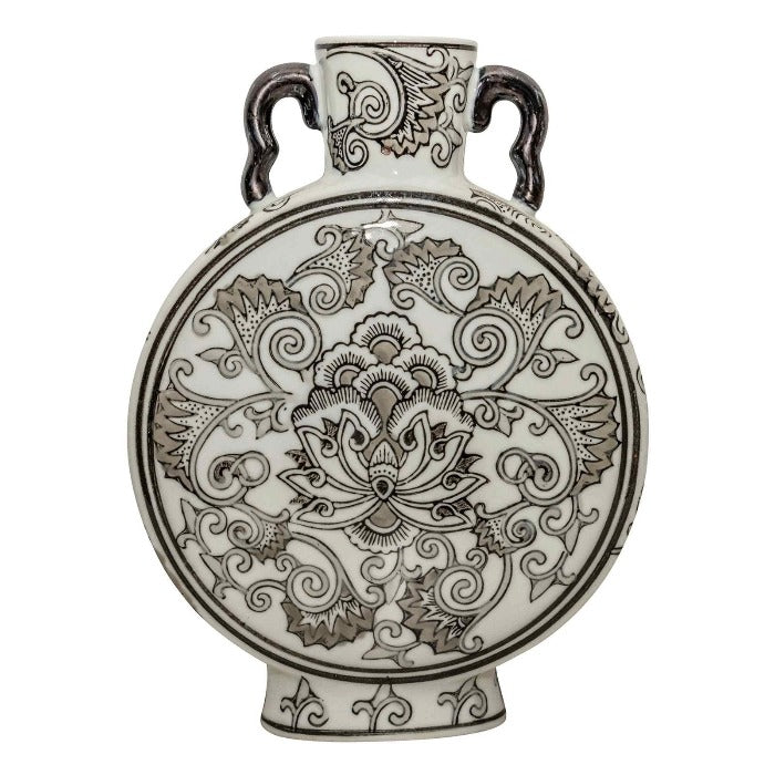 This unusual hand painted floral style bottle vase with handles could add that Asian inspired feel to a contemporary setting.