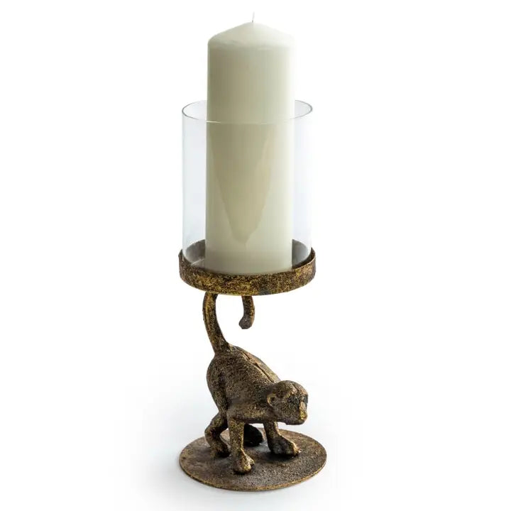Antiqued Crouching Monkey Candle Holder with Glass Cover