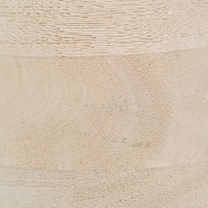 Our Badminton Table lamp is like a piece of art. Beautifully made from Mango wood, in a pale almond shade, this has been made from multiple pieces of wood, turned, and sanded to create smooth sleek edges. Grain and knots from the wood may be visible, and only add character to this piece. Sold with a simple black cotton drum lampshade, that helps cast a warm light that enhances the shape of its base.