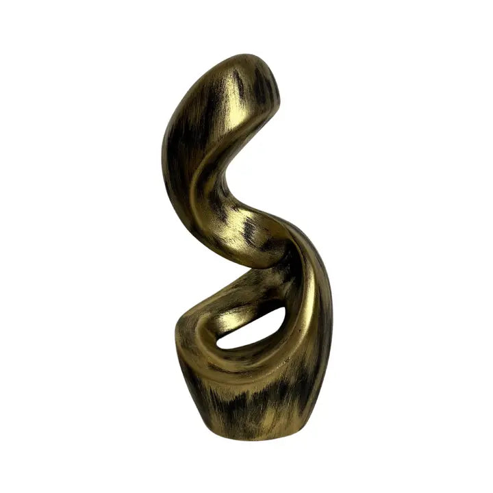 "Eternal Glow" radiates opulence with its golden sheen and elegantly twisted form. This abstract sculpture captures the essence of timeless beauty, blending modern artistry with classical sophistication. Perfect for elevating any interior space, it invites light and luxury into its surroundings.