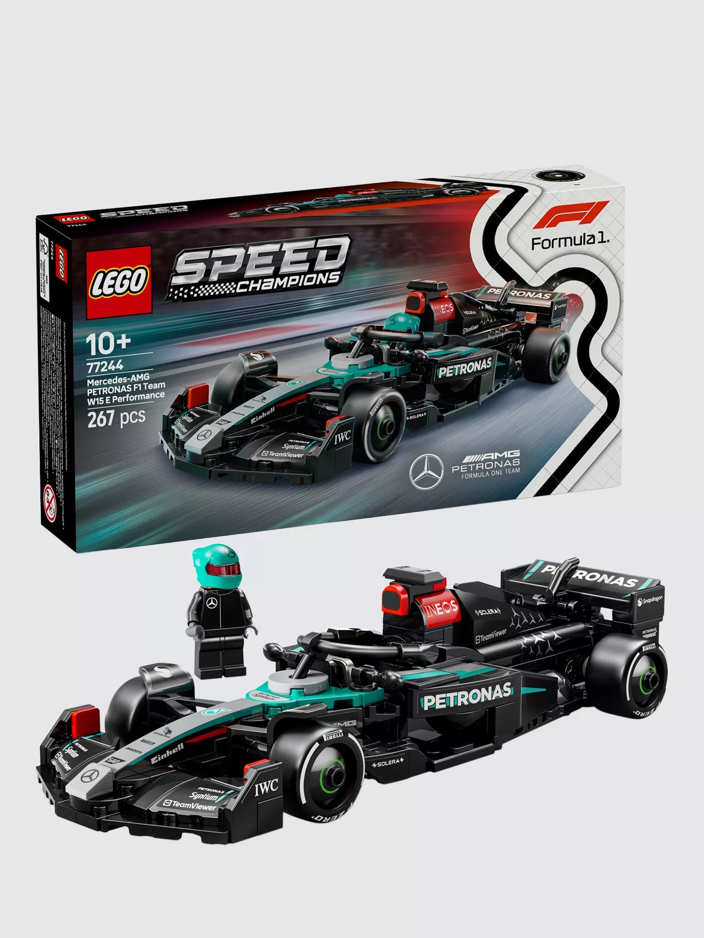 Young motorsport fans can build, display and race this awesome LEGO Speed Champions Mercedes-AMG PETRONAS F1 Team Race Car set (77244). This sleek F1 toy car for 10-plus-year-old kids and Mercedes-AMG PETRONAS F1 Team fans includes design details from the car that competed in the 2024 Formula 1 World Championship.