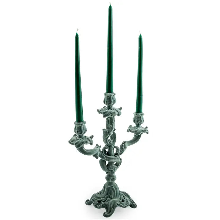 Light Grey/Blue Flock Ornate Candelabra