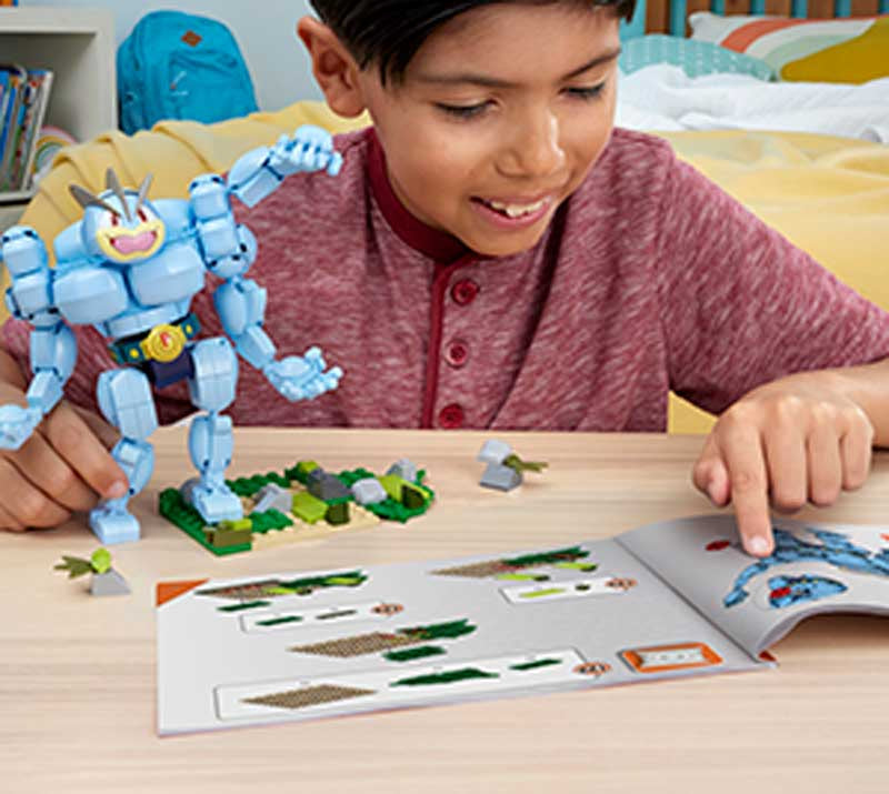 The martial arts Pokémon Machamp is ready to build with MEGA! Build Machamp, then turn the crank to activate its punching motion.