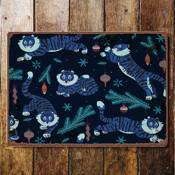 Tiger Christmas Scandinavian Wall Metal Sign Plaque