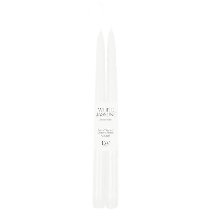 A Lovely pack of 2 white jasmine scented candles, perfect as a finishing touch in the centre of a table, mantle piece or shelf.